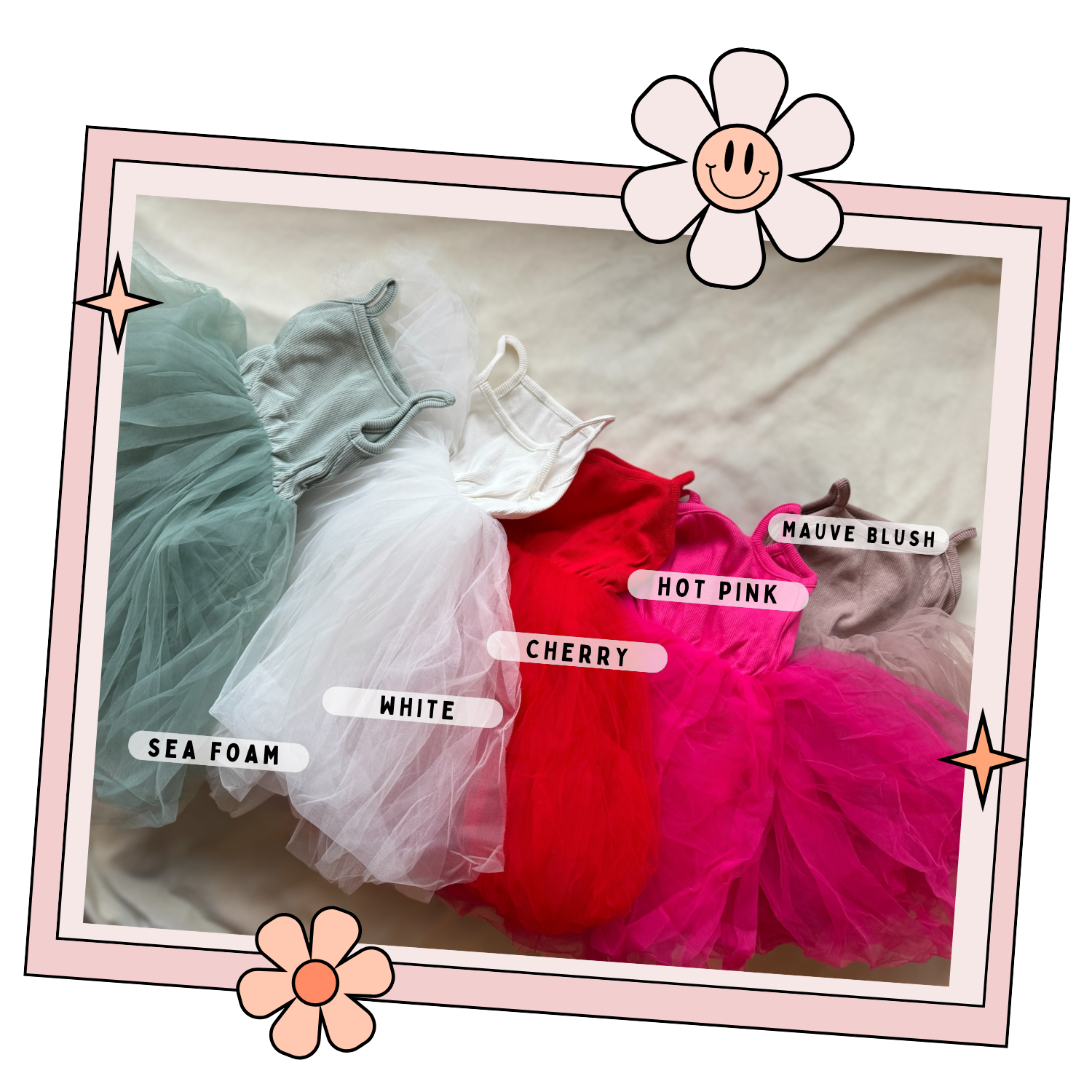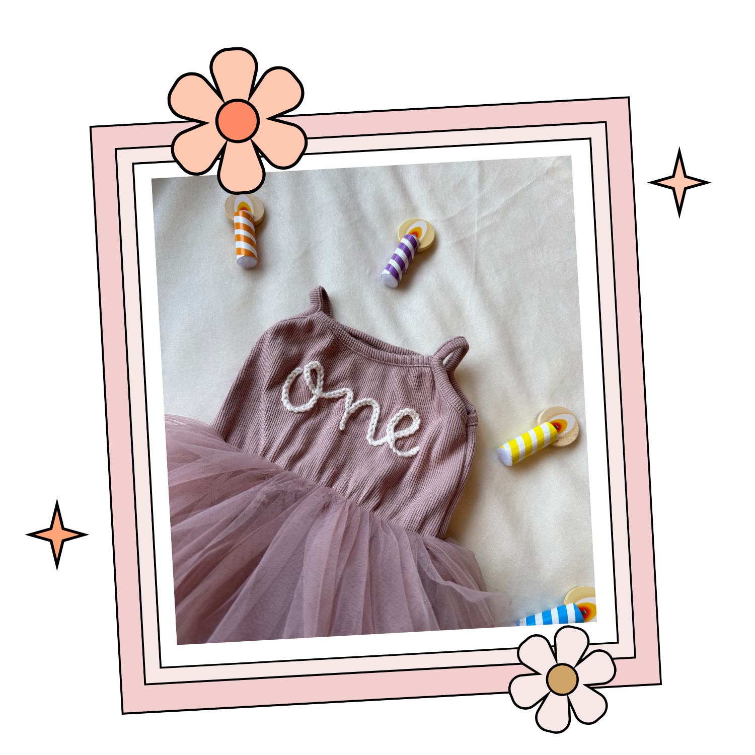 Each soft, comfortable dress features delicate embroidery on the bodice and a dreamy tulle skirt—perfect for cake smashes, birthday photos, and first birthday celebrations. Thoughtfully made with care and intention, no two dresses are exactly alike.